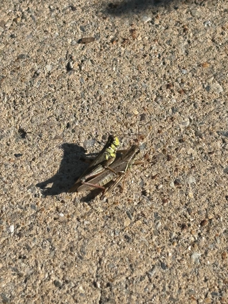 the grasshoppers begin to mate.